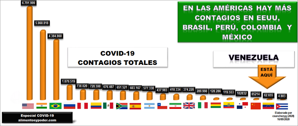 Mientras que en Venezuela, se superan los 60.000 contagios totales; Brasil superó lamentablemente los 4.300.000 casos, seguido por Perú y Colombia con más de 700.000 casos; cuándo México, supera los 670.000; y Argentina se encamina hacia las 600.000 personas contagiadas. En tanto, en Chile disminuyen, en Argentina aumentan.