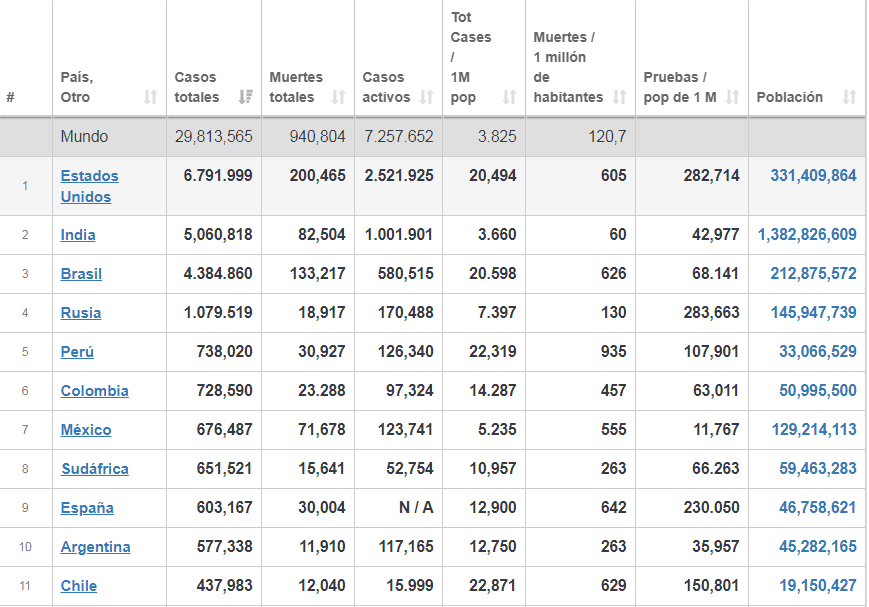 [1] Basado en el análisis del reporte Woldometer al 16/09/2020 (WOLDOMETER, 2020). PANDEMIA DE CORONAVIRUS COVID-19. Recuperado el 16 de 09 de 2020, de https://www.worldometers.info/coronavirus/?utm_campaign=homeAdUOA?Si#countries
