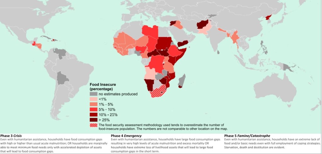En resumen, con este indicador mediante el consenso, se identifica la necesidad de intervención humanitaria, avalada por múltiples actores, clasificando la inseguridad alimentaria ‘aguda’ y crónica[6]; y desde el 2019, la ‘probable hambruna’ o desnutrición aguda en un país.