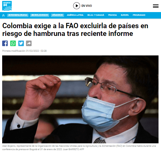 No sólo eso, agregando: “el mapa que se presentó no ayudó mucho con ese objetivo y también hace parecer que Colombia estaría en igual situación que otros países que están en una situación de inseguridad (alimentaria) crónica”.