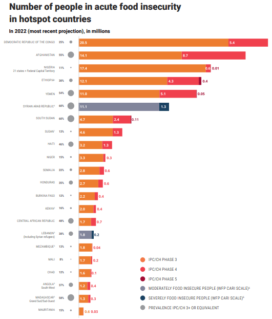 Porque si hay algo que tiene el informe 2022, como también lo tuvo la edición de 2021, son inconsistencias como que, aparece Colombia en el mapa (volver a ver imagen 1), más no así en la gráfica, olvidando incluirlo donde se muestran los países con inseguridad alimentaria aguda en 2022 (ver imagen 9), cosa que sólo se hace, si se manipulan los indicadores alimentarios, como lo han hecho con Venezuela en los últimos años.