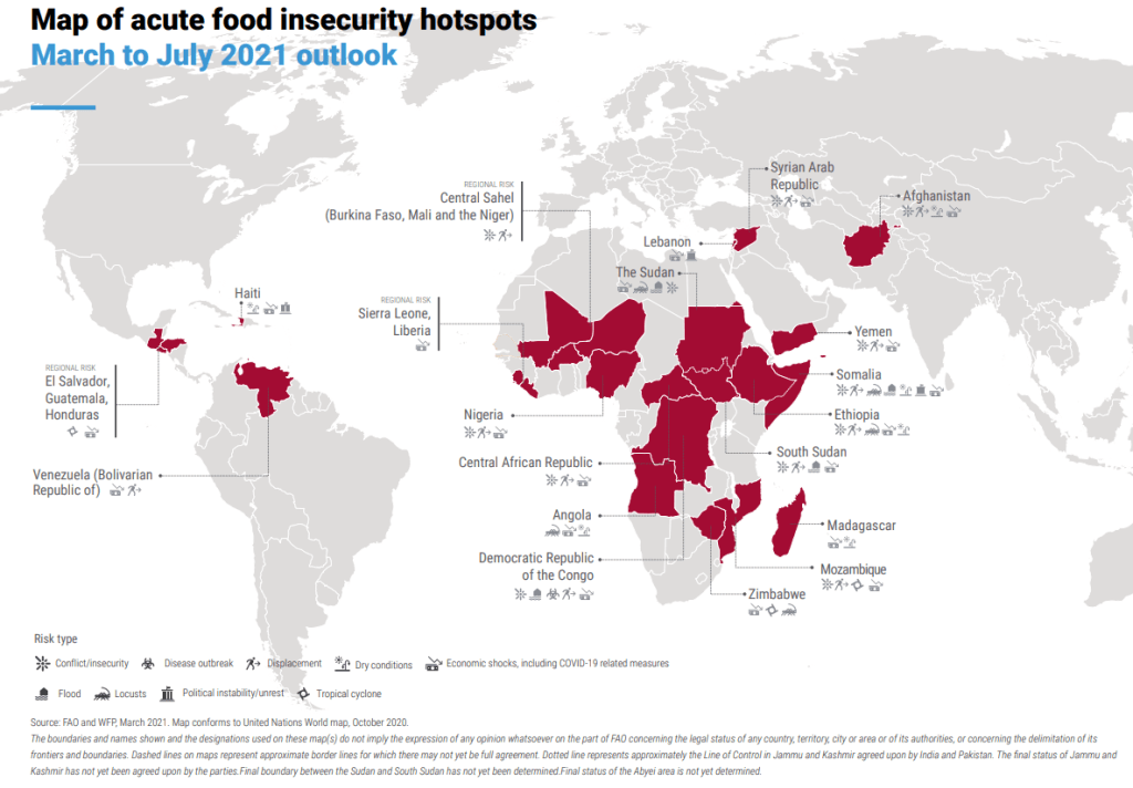 [5] (FAO, PMA, 2021) Hunger Hotspots. FAO-WFP early warnings on acute food insecurity. Roma : s.n., 2021.