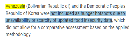 Más escandalosas aún, son las afirmaciones del representante de la FAO, al dejar ver que la presentación de Colombia en el mapa, tenía intenciones de mostrar la situación de los migrantes venezolanos, cuando en el mismo informe se puede leer en la página 8: “no se incluyó a la República Bolivariana de Venezuela (…) como puntos críticos de hambre debido a falta de disponibilidad o escasez de datos actualizados sobre la inseguridad alimentaria” (ver imagen 17).